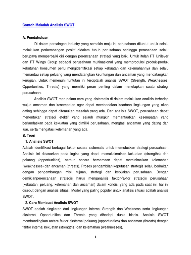 Contoh Analisis SWOT Usaha Bakso from imgv2-2-f.scribdassets.com Hal ini dikarenakan dengan metode swot kita bisa mengetahui kekuatan dan kelamahan kita, sekaligus kekutan dan kelamahan di pasar kita bermain. Contoh analisis swot bisnis ukm. Secara tidak langsung kita dapat menentukan jalan terbaik bagi mengatasi sesuatu masalah atau halangan yang timbul. Pelbagai jenis roti pelanggan tetap untuk dikomersialkan persaingan yang (dalaman) (luaran) (luaran) tinggi (luaran). Tahapan analisis swot, download template swot, aspek internal dan eksternal, cara pembuatan swot, contoh swot bisnis ekspor, contoh swot. Perniagaan roti kekuatan kelemahan peluang ancaman. (lihat bagaimana melakukan analisa swot untuk. Melalui contoh tersebut diharapkan mampu memberikan pemahaman lebih terkait analisis swot.